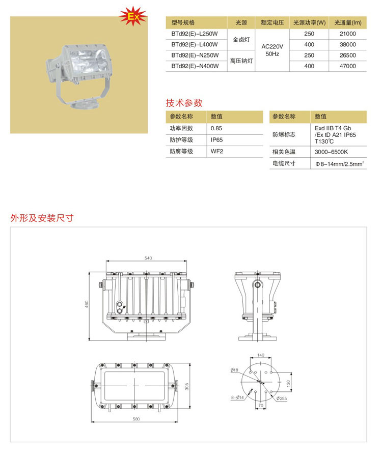 適用于各種依然易爆氣體場所的室內(nèi)外作業(yè)、施工現(xiàn)場及裝置、設施等作大面積泛光照明。