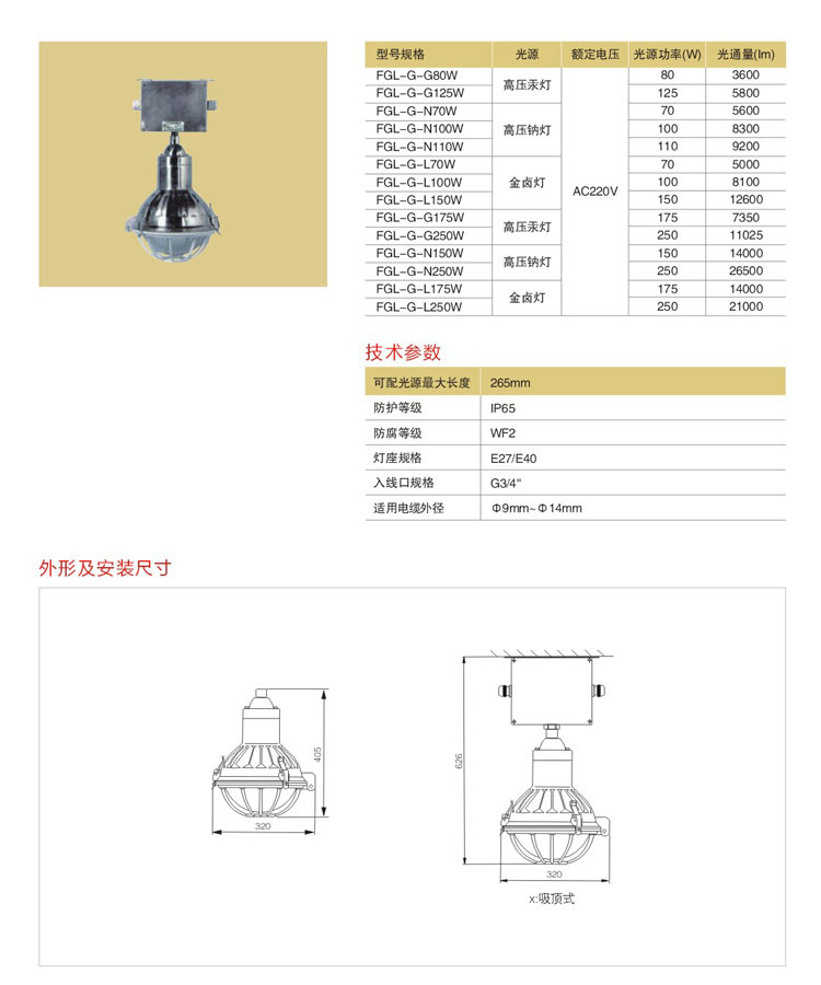 ■ 鋼化玻璃燈罩,不銹鋼外露緊固件;