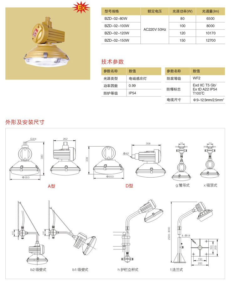 7.燈具造型新穎、BZD-02美觀大方,安裝維護(hù)方便,適用低棚照明。