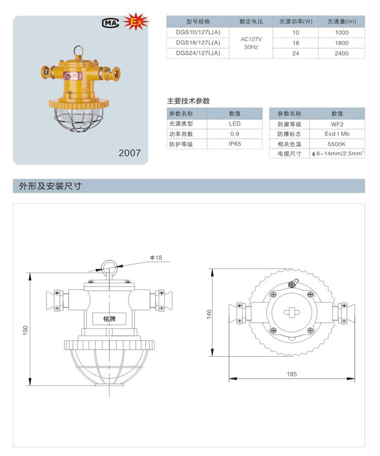 廣泛適用于有甲烷、煤塵等爆炸性混合物氣體的煤礦井下巷道及室內(nèi)作固定式照明.