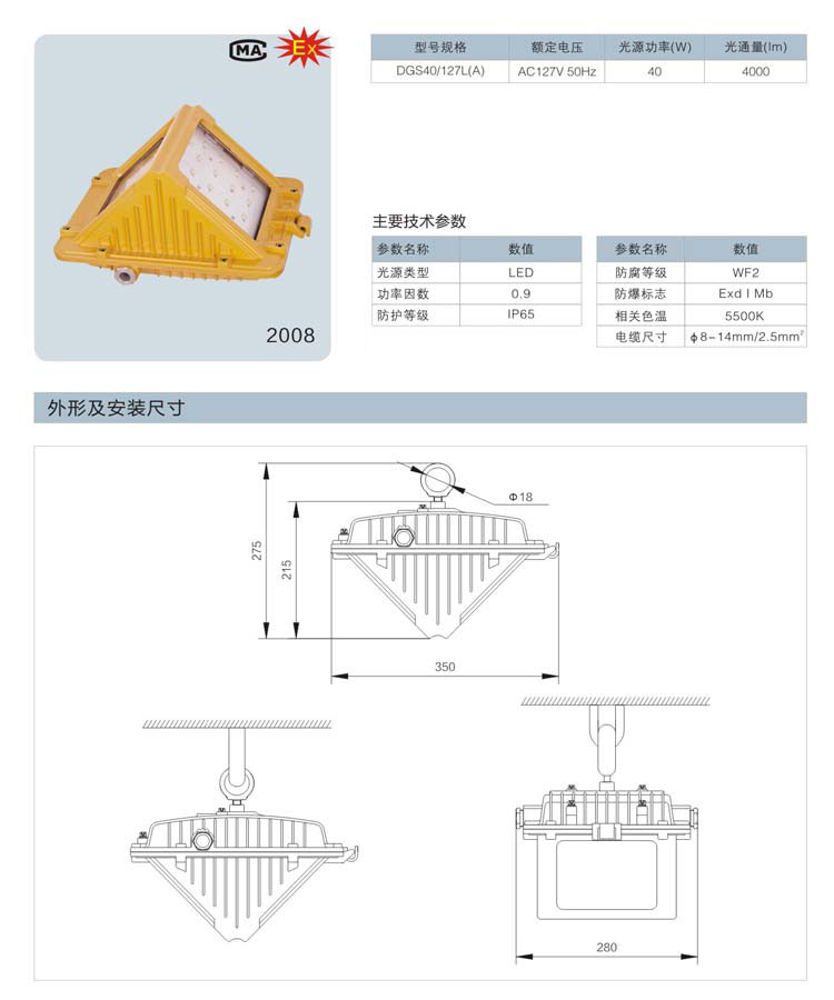 廣泛適用于有甲烷、煤塵等爆炸性混合物氣體的煤礦井下巷道及室內(nèi)作固定式照明.
